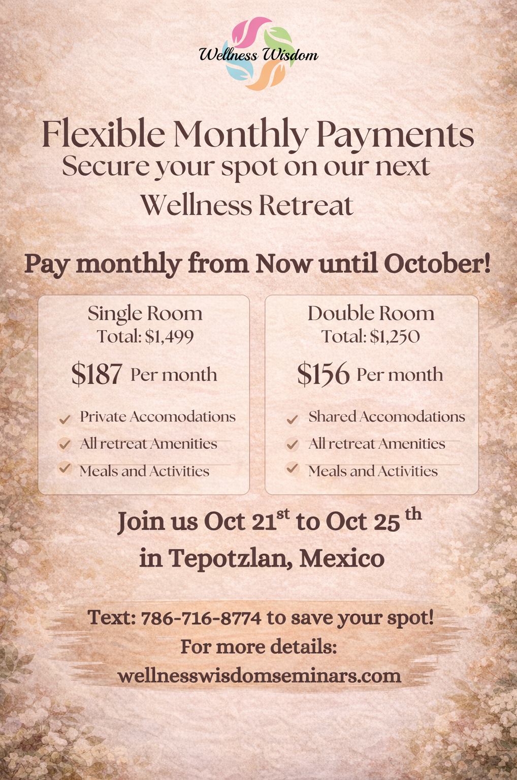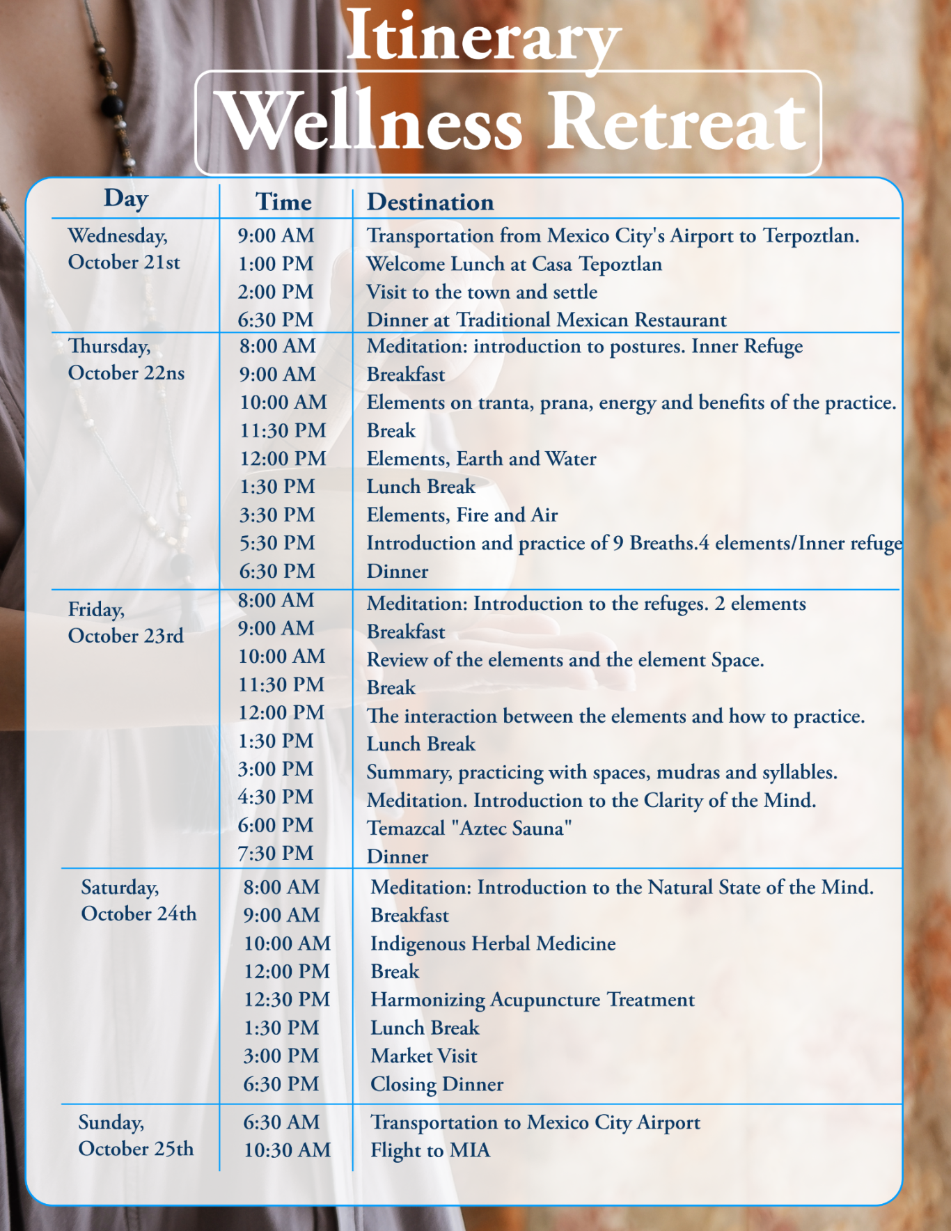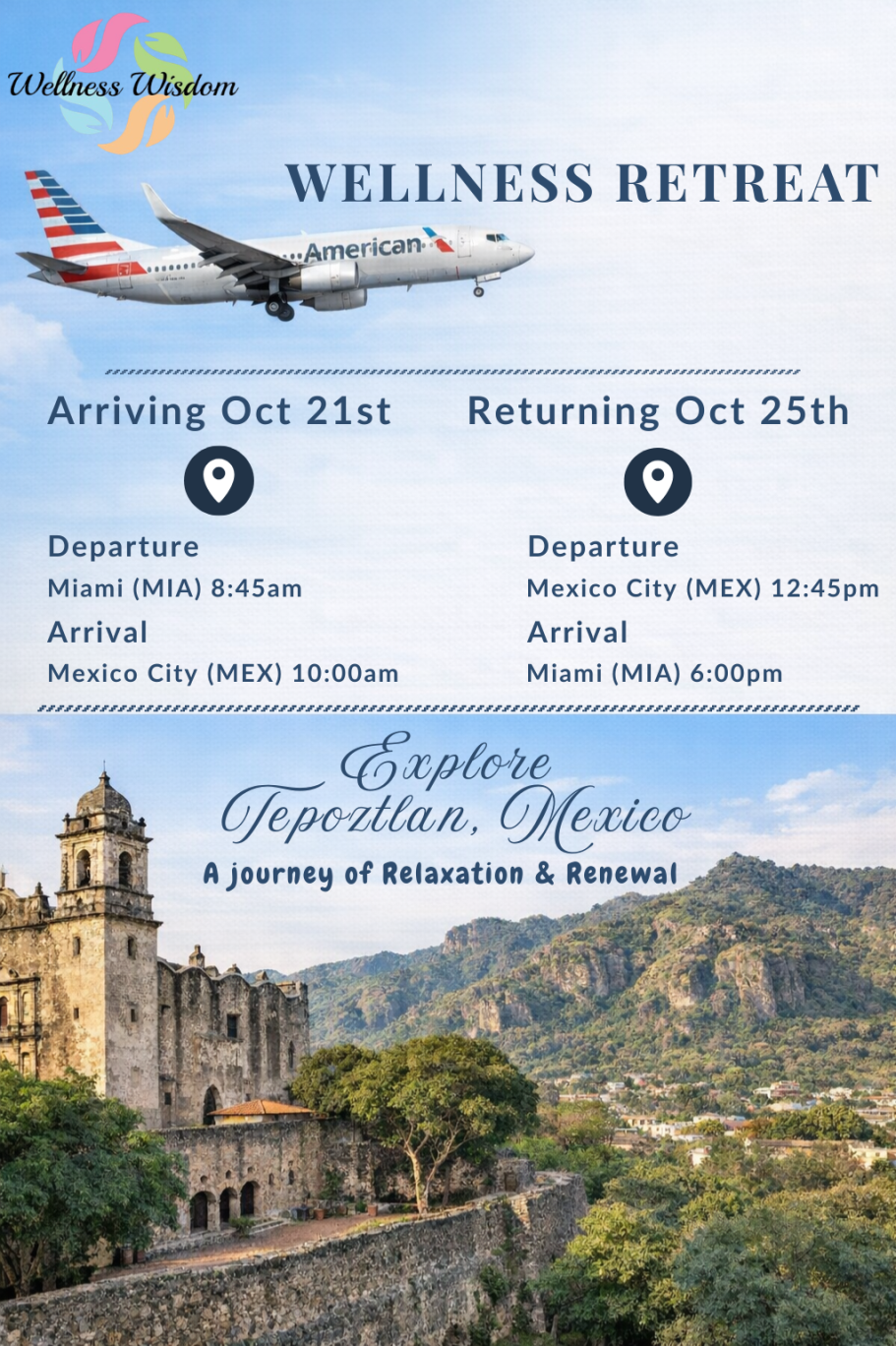 - Private transportation To/From airport in Mexico (*Airfare excluded)